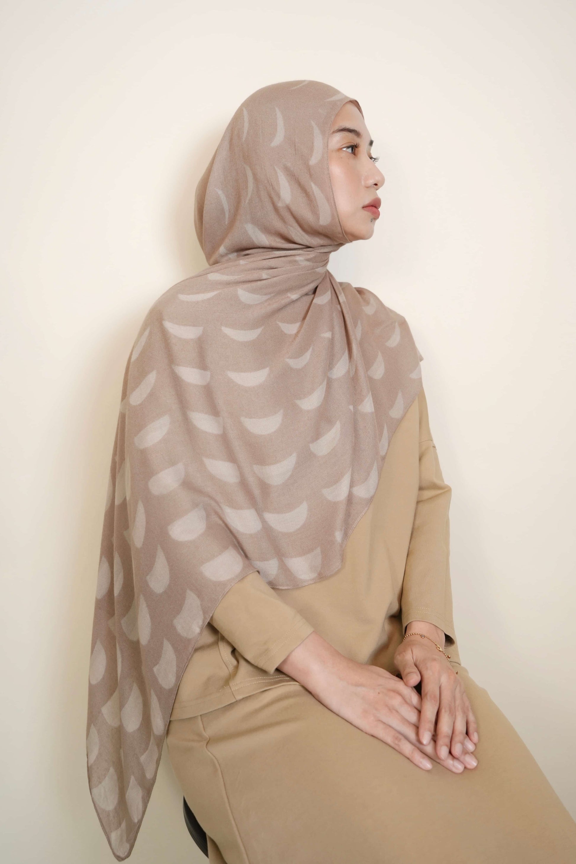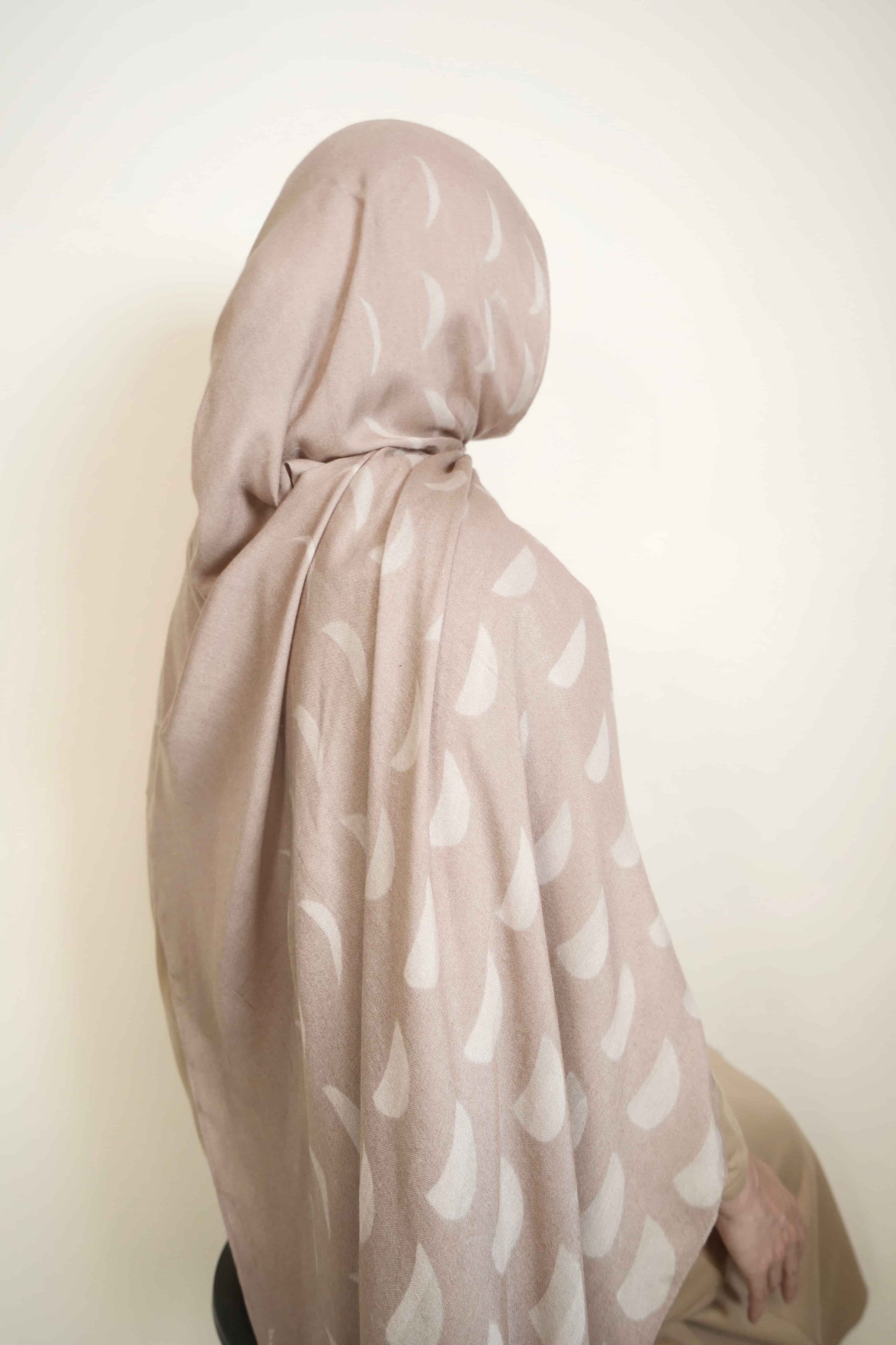 Hand-drawn Moon Phases Modal Shawl with Beige-Taupe Background