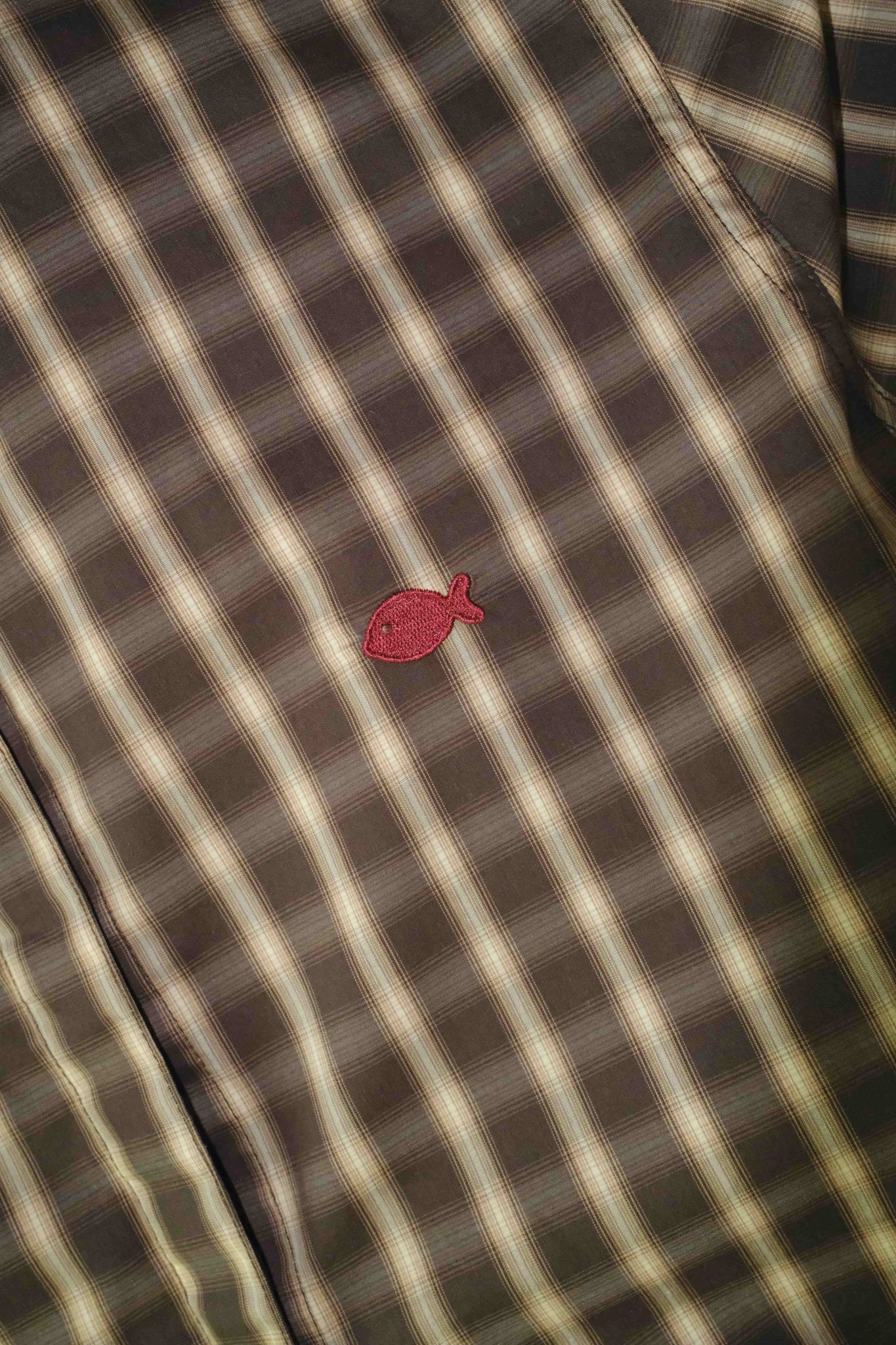 Functional boxy ribboned brown checkered shirt with our signature barangkeli embroidery