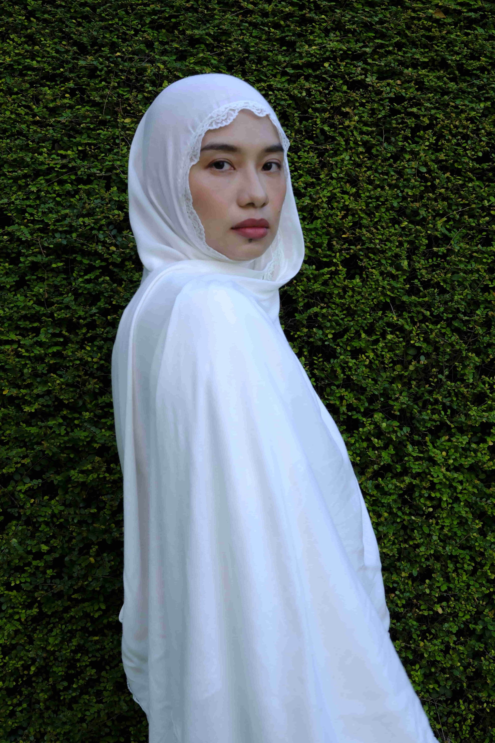 Lace Edging Premium Plain Modal Shawl in Pearl